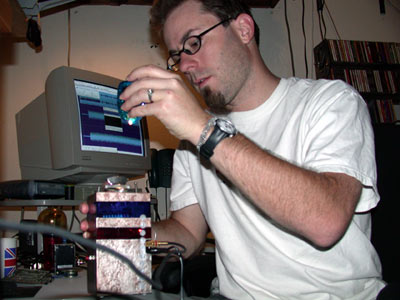 Me debuting and debugging Math at index's house, tickling the optical resistor with a cheezy LED light/radio thingee. | |