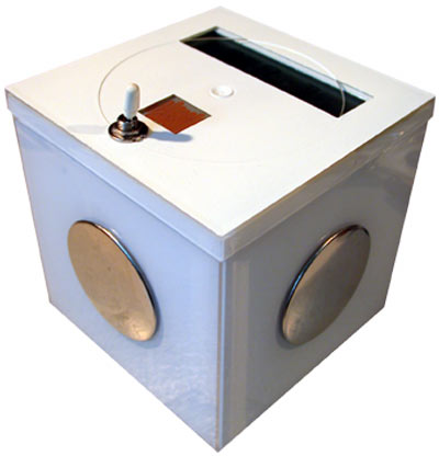 the myriad sounds by rapidly touching two of the 3 metal disks on the