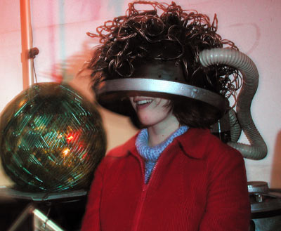 An interesting subject, "Sylvania" was brought to us via our sister organization, Uni Tertiary Systems (UniTS). She claimed to have some sort of "power" in the area of empathetic responses to dolphins and other "intelligent" lower lifeforms. We decided to see if her "ability" could be somehow amplified to link her closer to her "human" brethren. Alas, the only lingering effect we were to achieve from her "exposure" was a state of (we hope semi) bliss. Aditionally, she claims, fits of apnea. Note the self-satisfied grin. An unfortunate aesthetic side-effect: her hair was brunette before the "exposure" to the Reconfigurator. |